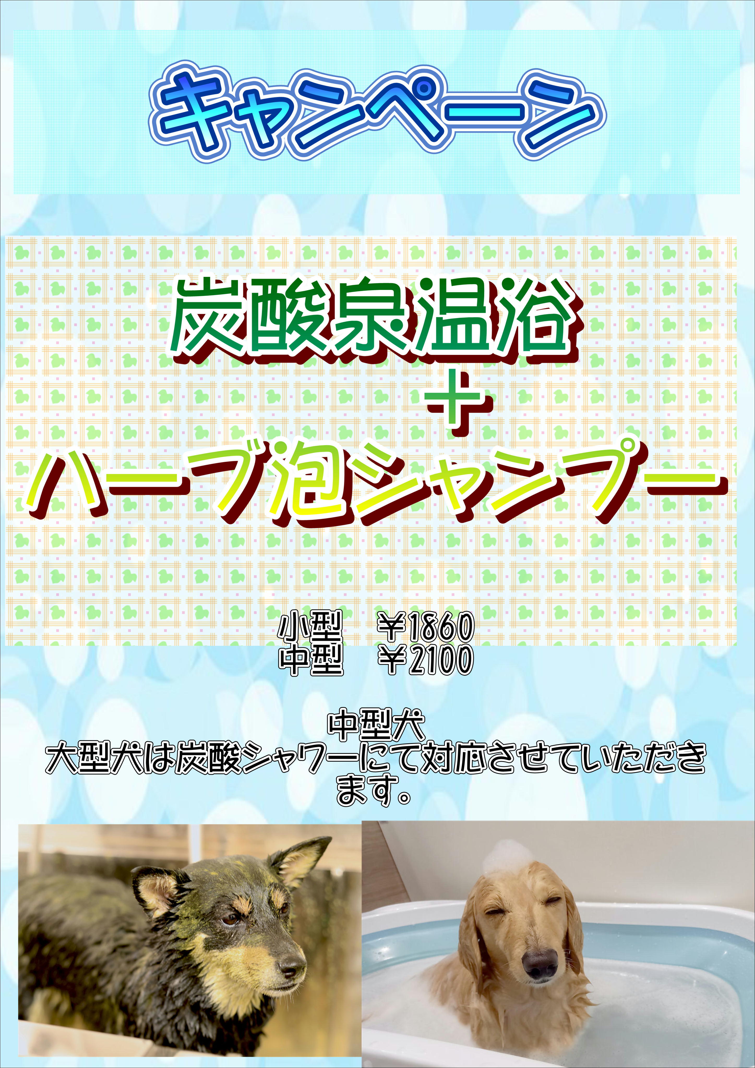中型犬・大型犬 ¥2100(炭酸シャワーにて対応)