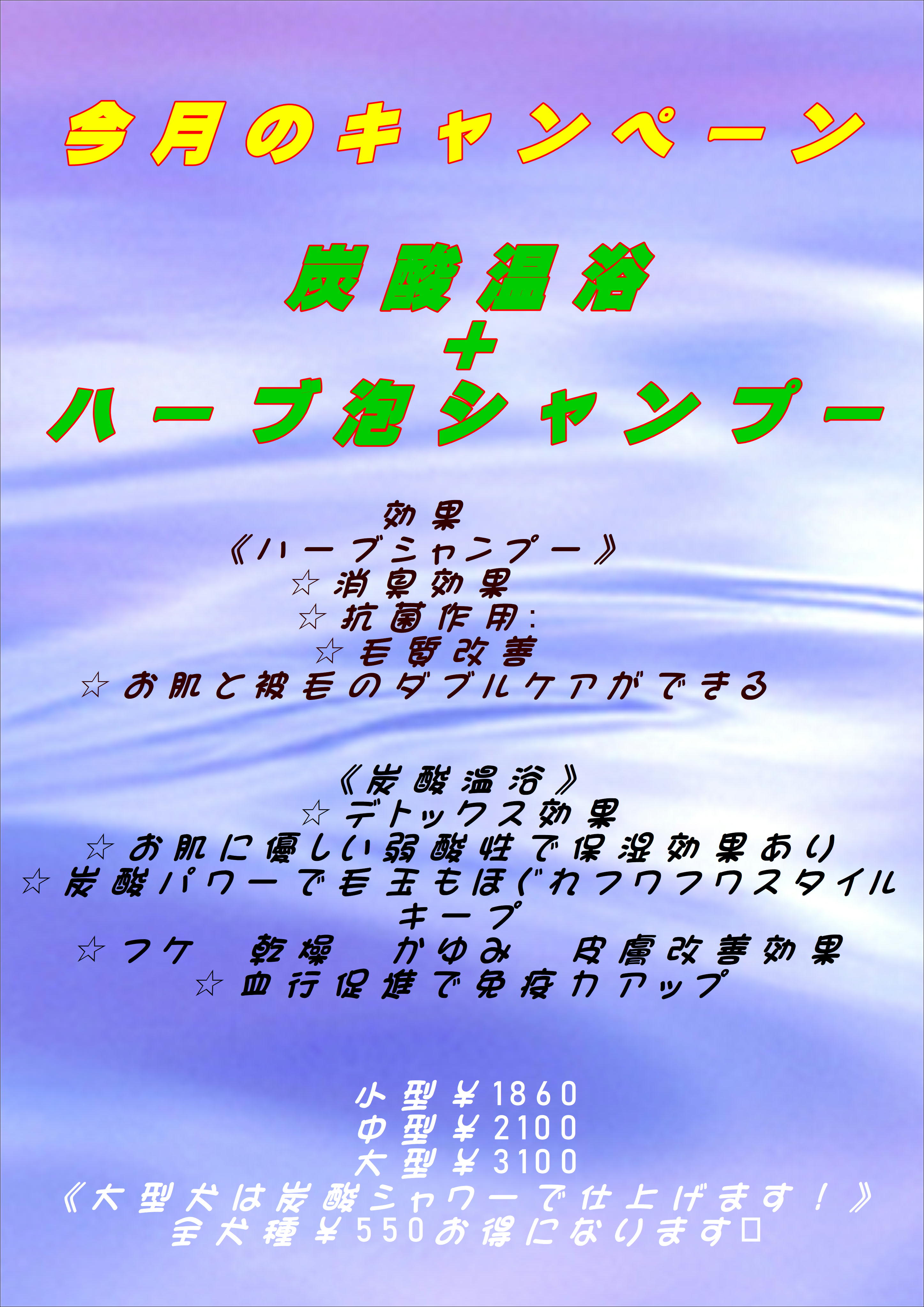Dogking東林間から10月キャンペーンのお知らせ 炭酸泉温浴+ハーブ泡シャンプー